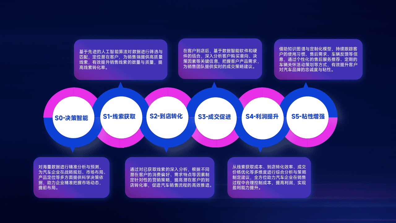 通过拓宽潜在客户来源、、、、优化线索分配并提高到店转化率,,以增强销售效率。。。同时,,利用线索数据不断优化分析模型,,有效提升转化率,,扩大营销影响力。。。。